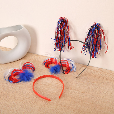 Mỹ Cờ Màu Tóc Giả Headband Cho Trẻ Em Độc Lập Ngày Đỏ Trắng Màu Xanh Giả Filament Cho Amazon Hot Bán Matt Bàn